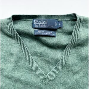 Men's Polo Ralph Lauren Green V-Neck Pima Cotton Sweater Size Large
