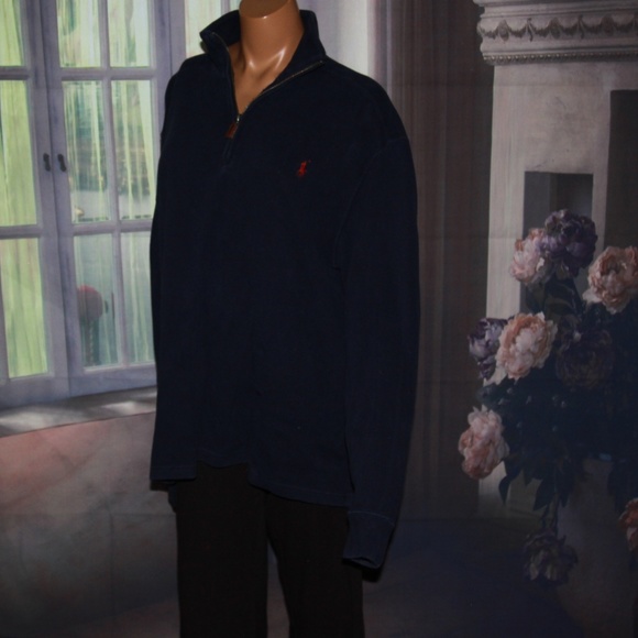 Men's Polo Ralph Lauren Navy Blue Cotton Blend Pullover Long Sleeve 1/4 Zip