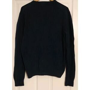 The product is a Men's Polo Ralph Lauren Pullover Crew Neck Sweater in Navy Blue, size Medium. Made of cotton knit fabric, this pullover sweater features a classic crew neck design and the signature Polo Ralph Lauren branding. The navy blue color adds a timeless touch to the sweater, making it a versatile and stylish addition to any man's wardrobe.