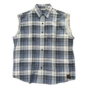 Mens Polo Ralph Lauren Sleeveless Blue Plaid Button Flannel Shirt Size M