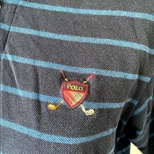 Mens Polo Ralph Lauren Sz Medium Polo Shirt Golf Embroidered Logo Blue Stripe