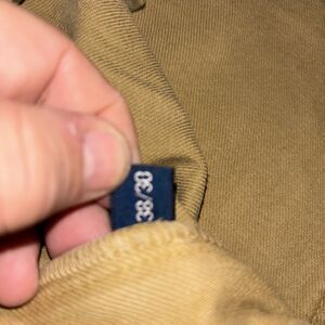 The Men's Polo Ralph Lauren Workman's Manufacturing Co. Jeans are a vintage pair of chino pants in a classic beige color. Made by the renowned brand Polo Ralph Lauren, these jeans feature a regular fit with a waist size of 38 inches and an inseam of 30 inches. Perfect for the modern man looking for a timeless and stylish addition to his wardrobe, these jeans offer both comfort and a touch of retro flair to any outfit.