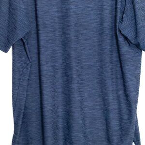 The Roundtree & Yorke men's polo shirt in navy heathered fabric offers a relaxed fit, providing both comfort and style. Its short sleeves make it adaptable for various settings, maintaining a polished look effortlessly.