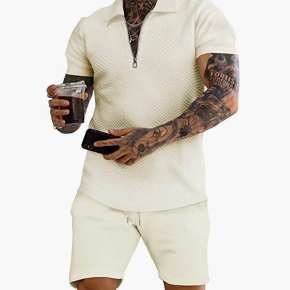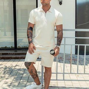 Men's Polo Shirt and Shorts Set - Beige 2 Piece Tracksuit