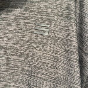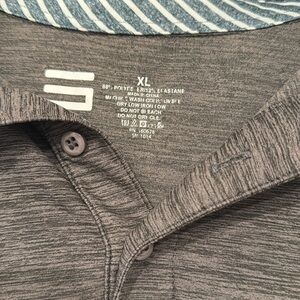 Elevate your casual wardrobe with this stylish polo shirt. Perfect for any occasion, this shirt offers comfort and a classic look. Good condition. No holes or stains that I can see. Please see pics. Polyester/elastine material. Heathered darkish grey.