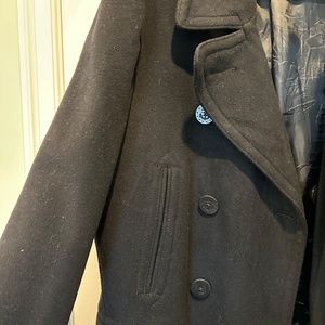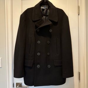 Men's Polo Wool-Blend Melton Black Peacoat. Double-breasted, branded buttons. Worn once, in perfect condition!