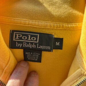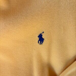 Soft, cotton. Very small (size of a pencil tip) spot on the left sleeve. You can see it in the front cover photo. NWOT.