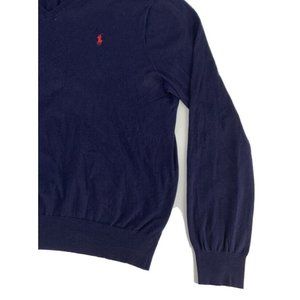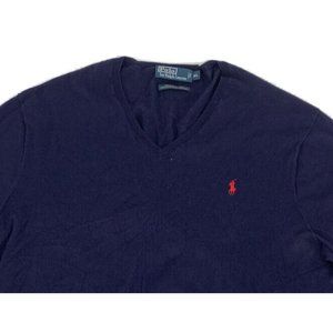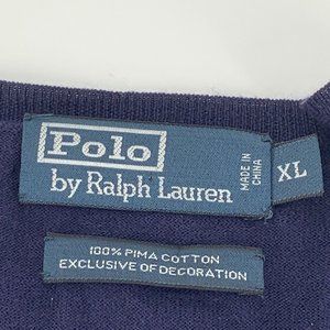 Men's Polo by Ralph Lauren Long Sleeve V-Neck Sweater Blue XL 100% Pima Cotton