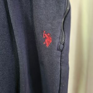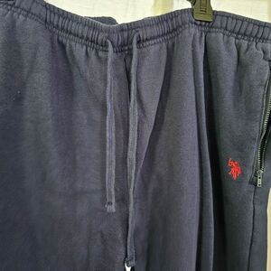Comfortable and stylish men's navy blue jogger pants are perfect for casual wear. US Polo Assn. size XL excellent condition, zippered sides pockets. back pocket. drawstring waist. 31 inches crotch to ankle