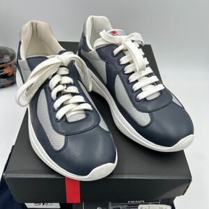 Men’s Prada America’s cup blue/silver sneakers size 6 fits 7US made in Italy
