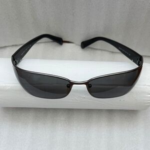 The product is a pair of Unisex Prada sunglasses with a black frame and black lenses. These sunglasses are classified as unisex adults, making them suitable for both men and women. The brand, Prada, is known for its high-quality and stylish eyewear, making these sunglasses a fashionable accessory for everyday wear. Perfect for adding a touch of luxury to any outfit, these Prada sunglasses are a versatile and timeless choice for those looking to protect their eyes in style.