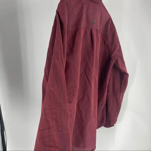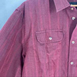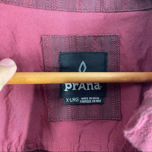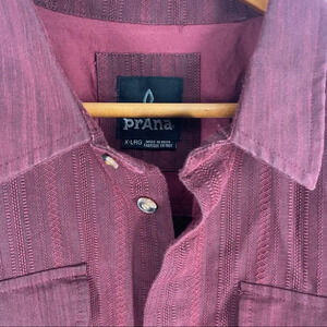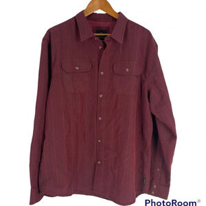 NWOT mens Prana button-down shirt. Size XL. Maroon with textured print and front pockets.
