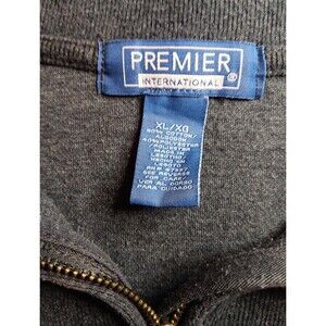 The product is a Men's Premier International XL Gray Long Sleeve Zipper Neck pullover, designed for activewear in the winter, fall, and spring seasons. Made from a blend of polyester and cotton, this classic fit pullover features a mock neck with a zipper accent, making it both stylish and functional. Machine washable, and with a pullover closure, this top is perfect for active men looking for a comfortable and versatile addition to their wardrobe. Made in Lesotho, this pullover embodies quality craftsmanship and a sleek design.