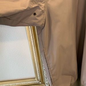 Men’s pull over wind and water resistant. Embroidery stating the Zone Club in gold and black. There are some stains and spots on the front of it.