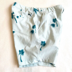 Men's Puma Golf Shorts Size 32 White Green Palm Print