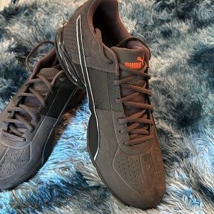 Worn once, Men’s Puma sz 11 running shoe Black/Orange- much blacker than pictured/ hate my lighting - sz is snug, fits like 11 narrow or 10.5 shoe, Puma known to run small, Christmas gift that could not be returned. SoftFoam technology insole.