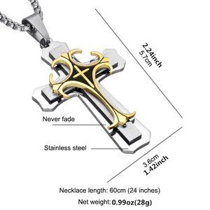 Men's Punk Two Tone Stainless Steel Cross Pendant Necklace