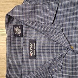 Mens Puritan Wrinkle Resistant Casual Blue Plaid Button-Down Shirt XL