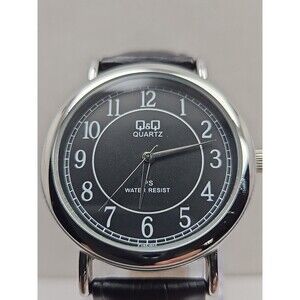 Mens Q & Q By Citizen Quartz Dress Watch Silver Black Dial 30M WR New Battery