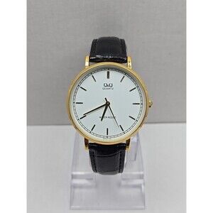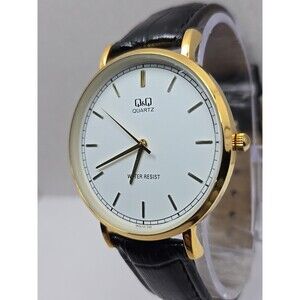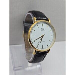 Mens Q & Q By Citizen Quartz Gold Tone Dress Watch White BlackNew Battery 30M WR