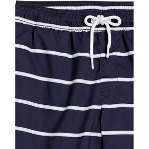 this trunk-style swimsuit features an elastic waistband with drawstring for a flexible yet secure fit