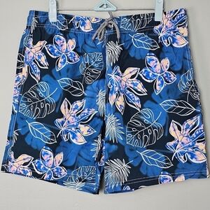 Men's Quick Dry Tropical Beach Shorts Swimsuit Swimwear Swim Trunks, Blue Leaf