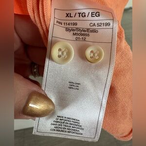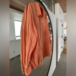 Superb quality linen shirt from QUIKSILVER! Beautiful soft orange color in 100% lightweight, woven linen! Single chest pocket with logo. Easy, comfortable fit! THE PERFECT WARM WEATHER SHIRT! No flaws, was gently worn and only ever washed on gentle cycle and hung to dry.