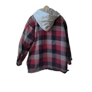 Mens Quilt Lined Red Plaid Hooded Heavyweight Chore Jacket Shacket Size 2XL