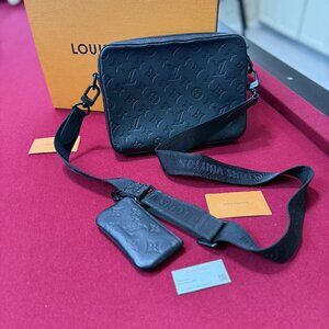 Men's Quilted/Embroidered Leather Monogram Cross-Body bag. (3 Pieces!!)