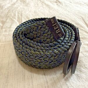Men's REI Woven Web Belt Double D Ring Blue Green Herringbone No Stretch