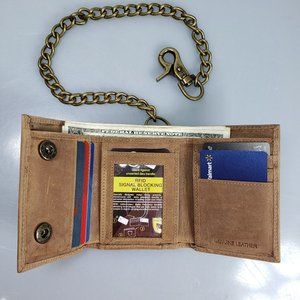Men's RFID Blocking Brown Leather Motorcycle Biker Trifold Wallet