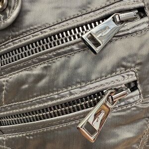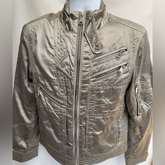 Elevate your style with this sleek metallic jacket. Perfect for a modern, edgy look.