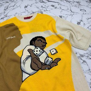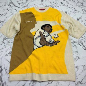 Men's RP55 Cream Yellow Brown Short Sleeve Sweater