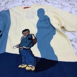 Men's RP55 Navy Aqua Ivory Short Sleeve Sweater