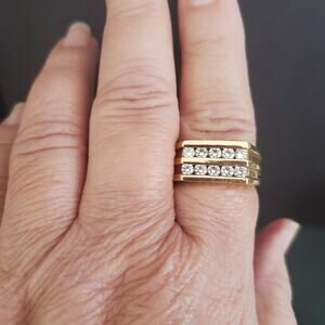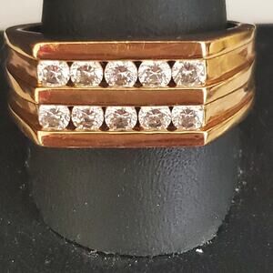 Men's RSC Cigar Band Ring Gold Tone Double Row CZ Stones Size 12 Dressy