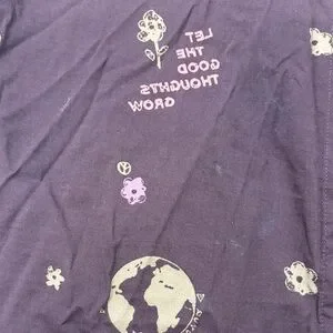 Stylish brown shirt featuring unique graphic designs. Perfect for casual outings. Size SM