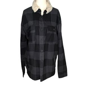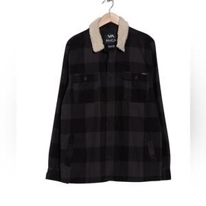 Men’s RVCA Range Faux Shearling Collar Plaid Shirt/Jacket – Sz Med