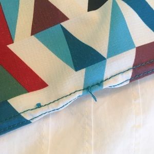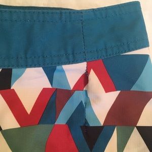 Men's swim trunks in a fun colorful print. Great quality material. A few loose stitches, but not noticeable and still in great condition.
