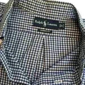 Men’s Ralph Lauren Blue Check Long Sleeve Button Down - Size 17, 34/35