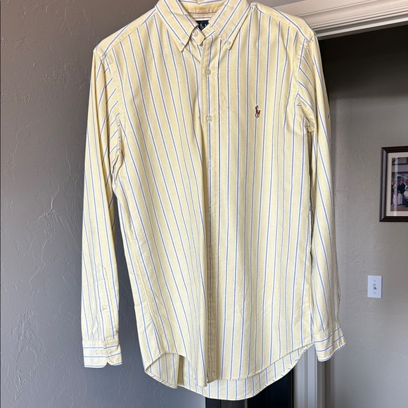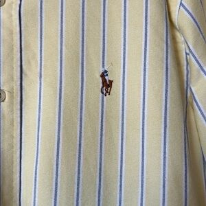 Men’s Ralph Lauren button down shirt in yellow with blue stripes. Size 32/33. Classic fit. Good condition.