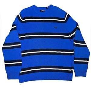 Mens Ralph Lauren Chaps Sweater Size Large Blue Vintage Cotton Crewneck Pullover Striped Crest Logo