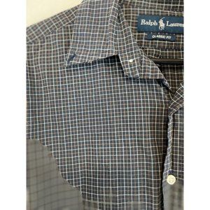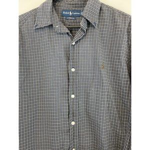 Men's Ralph Lauren Classic Fit Medium Button Up Shirt Blue White Check L/S 23