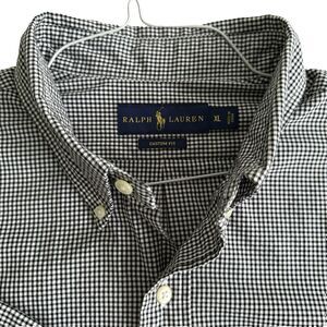 Mens Ralph Lauren Custom Fit Black Micro Check Shirt Button Down L/S Office XL