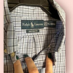 Men's Ralph Lauren Custom Fit Off-White Checked Button-Down Shirt, Size XL