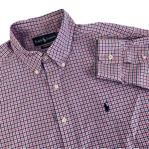 Mens Ralph Lauren Long Sleeve Button Down Gingham Check Shirt Size XL Pink Blue