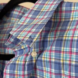 Elevate your casual style with this handsome Ralph Lauren plaid polo shirt! This short-sleeve button-up is perfect for a relaxed yet refined look. It's in great condition, ready to wear and impress.