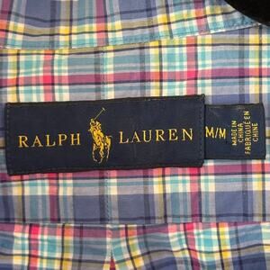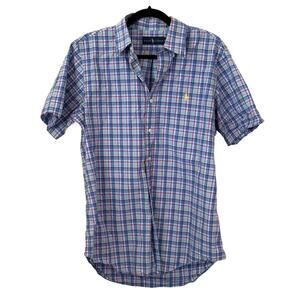 Men's Ralph Lauren Plaid Short Sleeve Button Up Collar Polo Tee Shirt - Medium