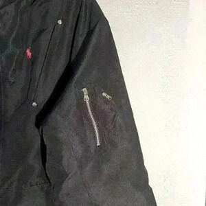 Men’s Ralph Lauren Polo Reversible black hooded This Ralph Lauren Polo coat is a versatile addition to your wardrobe. The outer shell is made of durable polyester and it comes in a sleek black color. This coat is perfect for men who want a reversible parka that can be worn on any occasion.