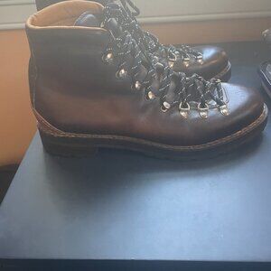 Pre-owned Ralph Lauren Mens Purple label Fidel Burnished Calfskin Hiking boots. No box, replaced laces. Size 11 Mens. Slight wear on each toe, pictured. In really excellent shape, no wear on soles. Estimated Retail price: $1895.