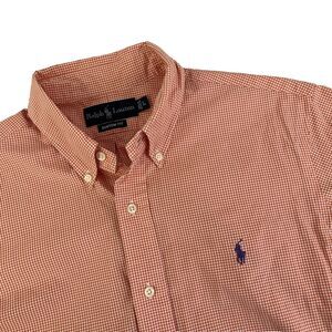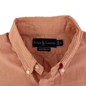 Mens Ralph Lauren Short Sleeve Button Down Shirt Size Large Gingham Check Orange